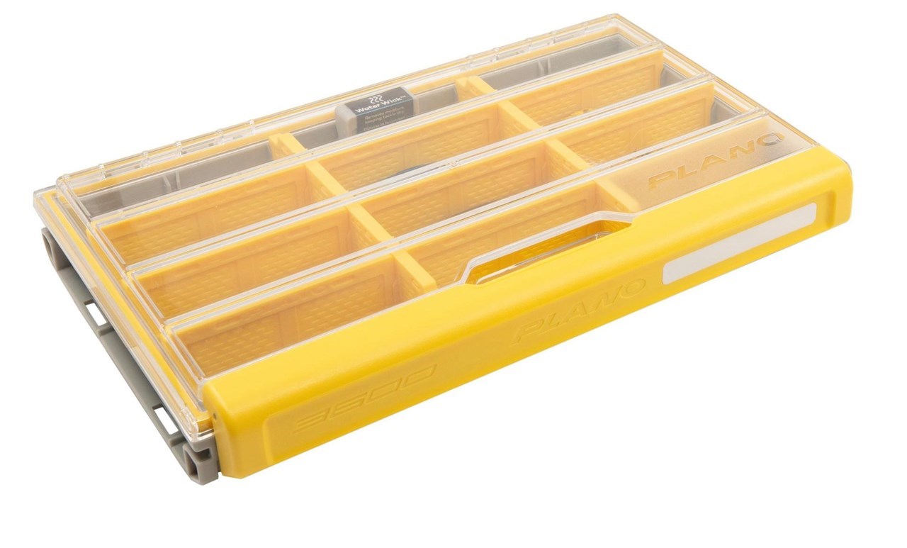 - Plano Edge tackle boxes feature an innovative labeling system with pre-cut vented dividers, enforced with water-absorbing desiccant material for effective and safe tackle organization